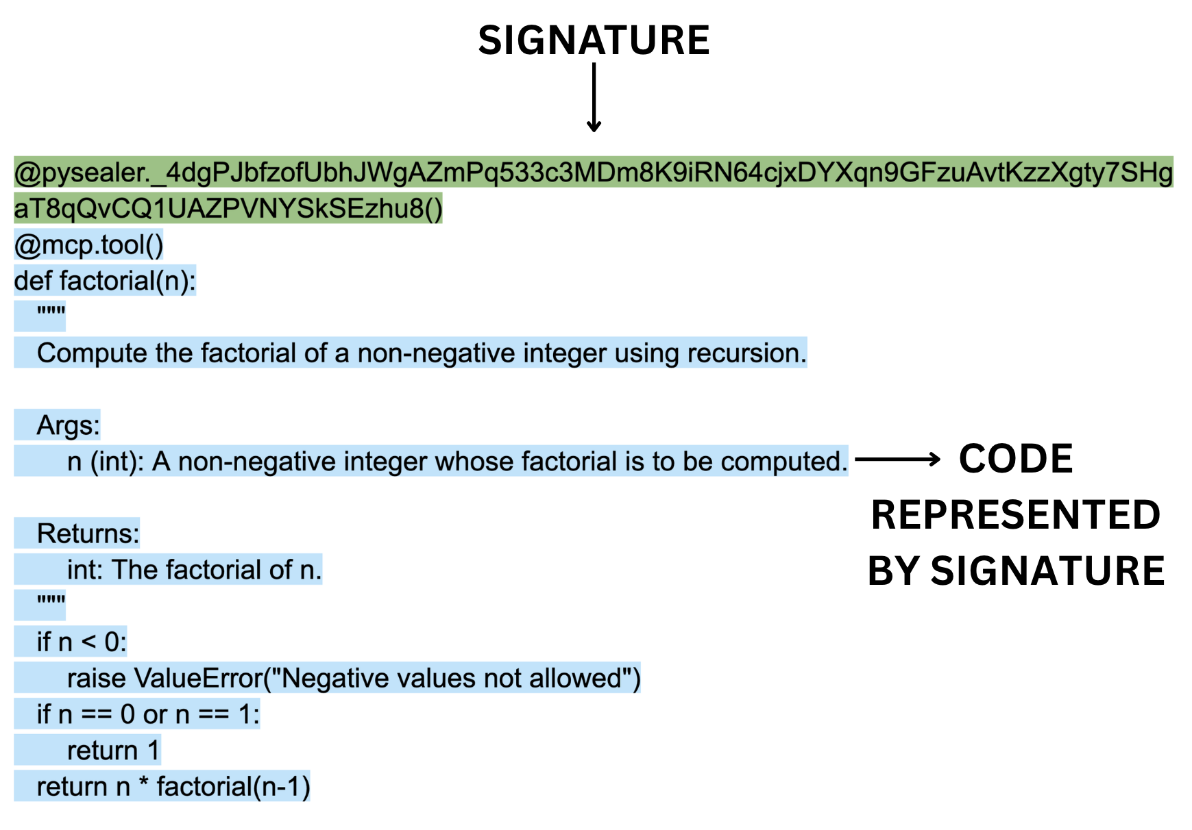 Pysealer addresses both the tool poisoning and tool shadowing vulnerabilities described above through cryptographic verification at the source code level. By automatically adding cryptographic decorators to each function, Pysealer creates an immutable fingerprint of each MCP tool’s code and docstring. This approach makes unauthorized modifications detectable, as any change to a tool’s code or docstring will cause signature verification to fail.